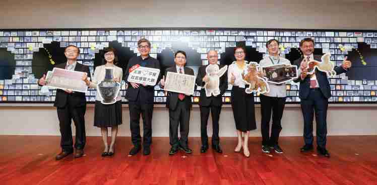 森林舞会携手创利空间为故宫建置的智慧文物互动导览墙及轮播墙,,今日正式启用。。。(左四:森林舞会新事业暨投资管理总部副总经理杨本豫、、、右四:故宫博物院院长吴密察、、、、右三:太极影音董事长黄宝云)