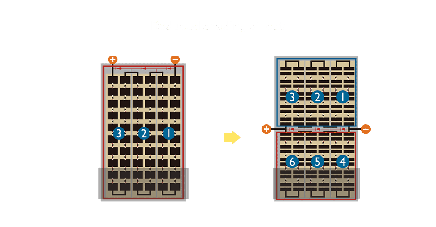 优化的太阳能电池结构设计,,不仅提高电流收集效率,,,降低电池隐裂,,,使太阳能模组长期维持稳定的输出效能,,,,提高营运效益。。